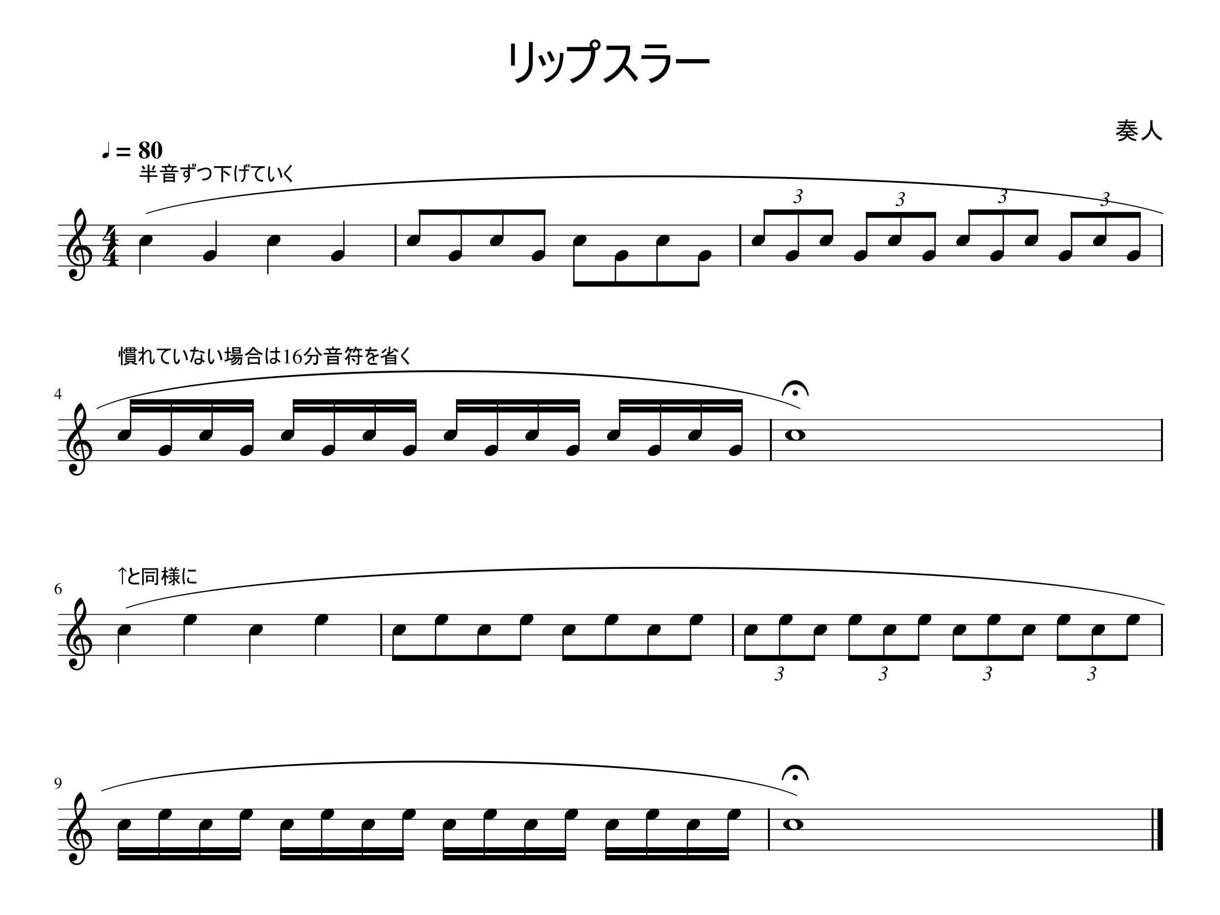 リップスラーの目的については、いろいろな考えがありますが、僕自身の考えとしては、息のコントロールの改善や音のツボ、感覚をつかむことだと思います。